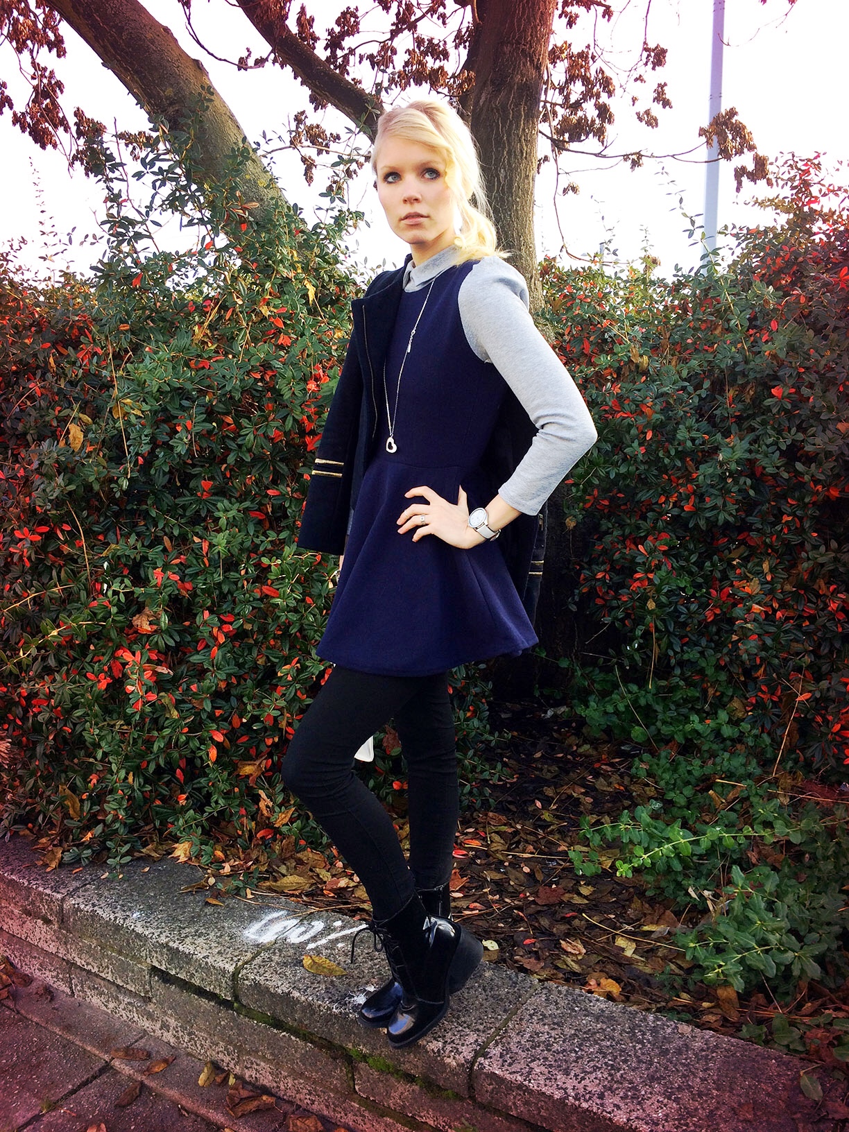 This is a ridiculously cute look on you – I love collared tops worn underneath winter dresses and I like how you improvised with leggings as you’re tall (I also have the same problem with dresses at times. Have a nice week!