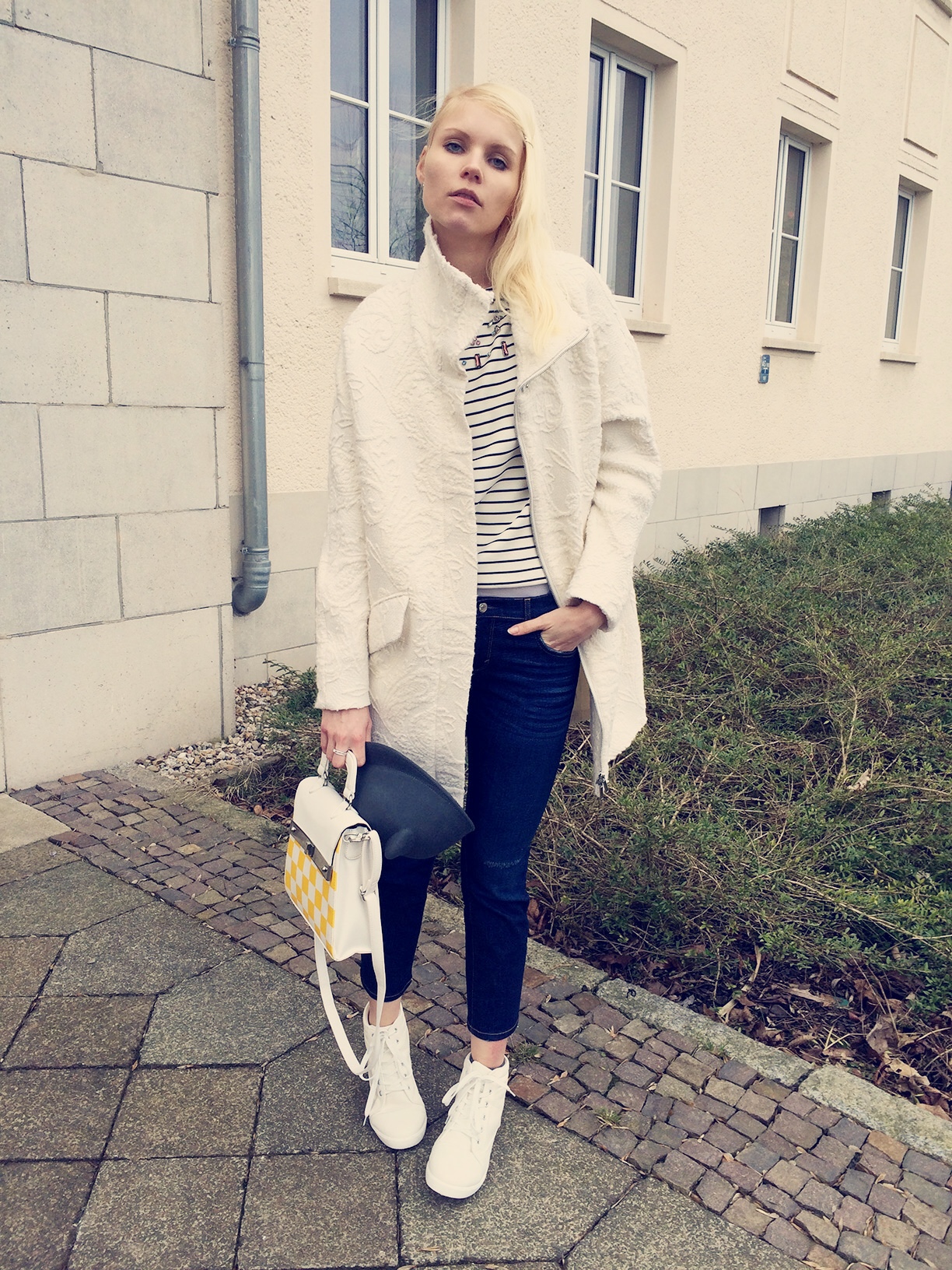 Der Mantel ist wunderschön! Und die Tasche zu dem Ringelshirt finde ich absolut klasse ;)