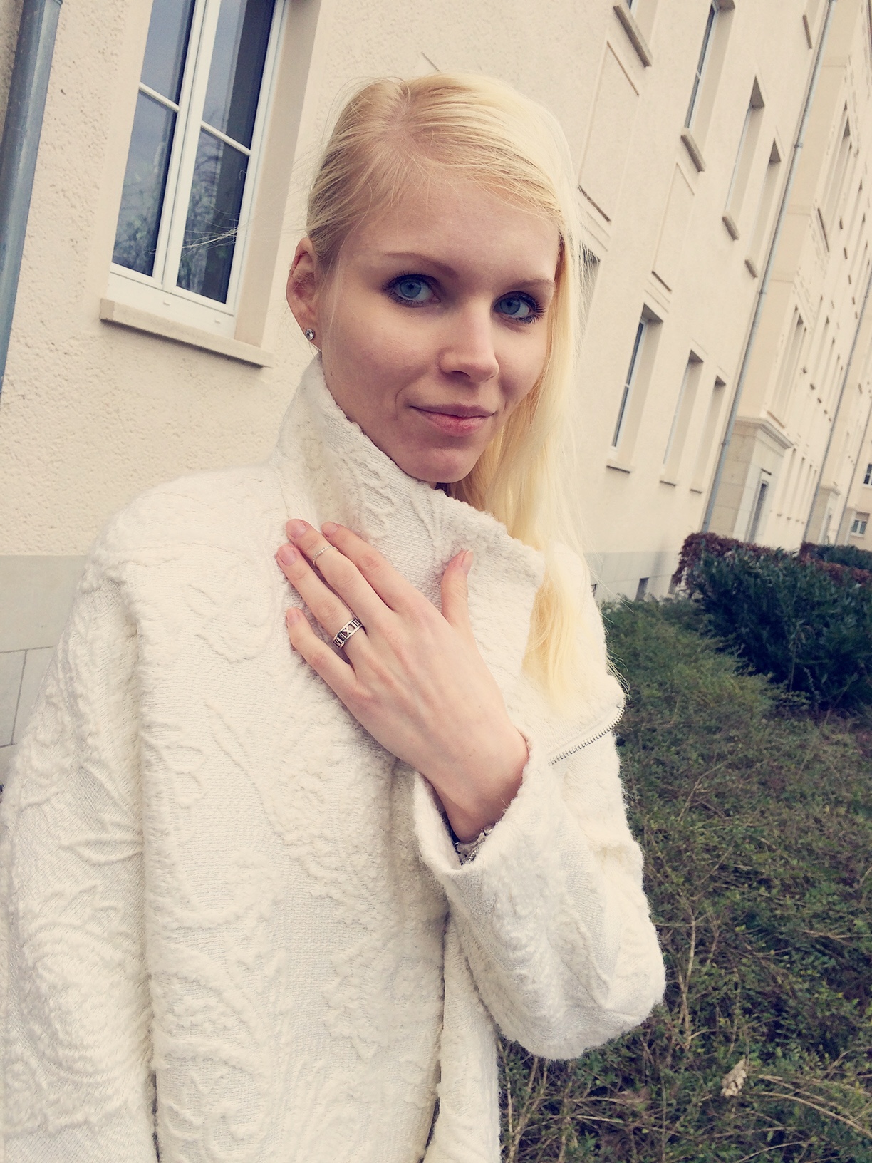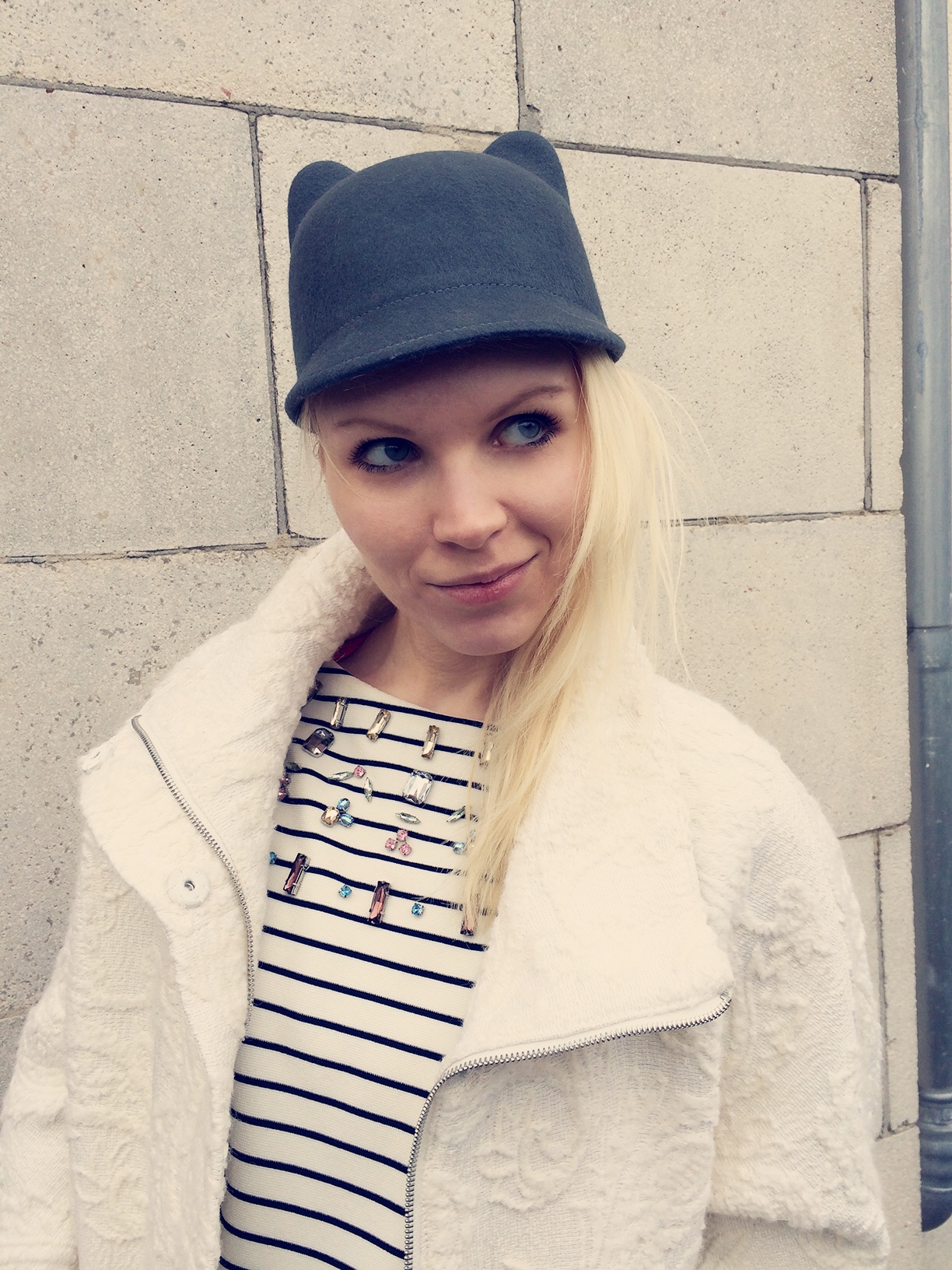 So charming I love this white coat the look is nice and I still love your little hat!!