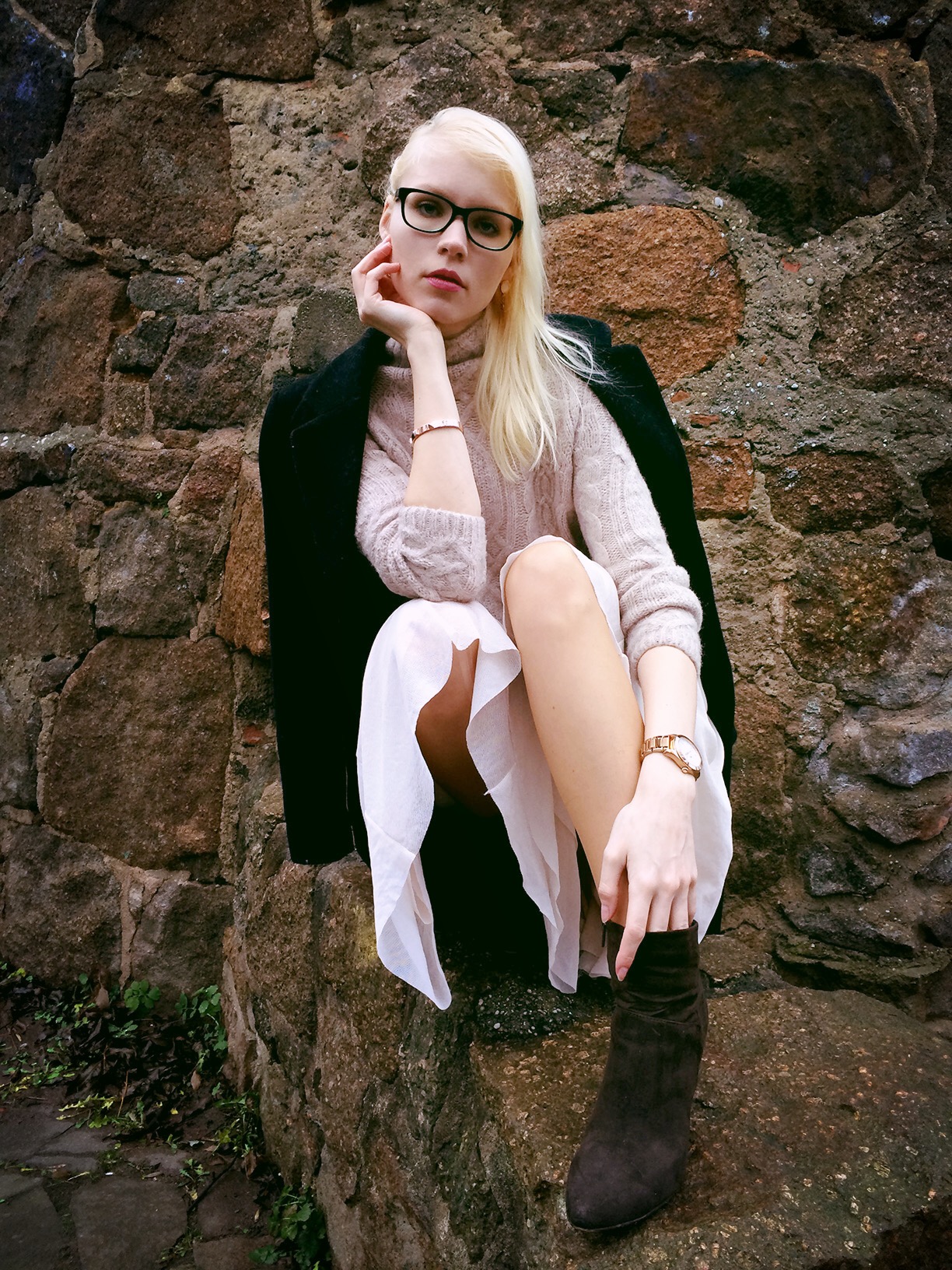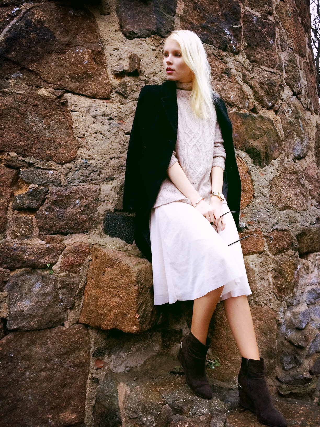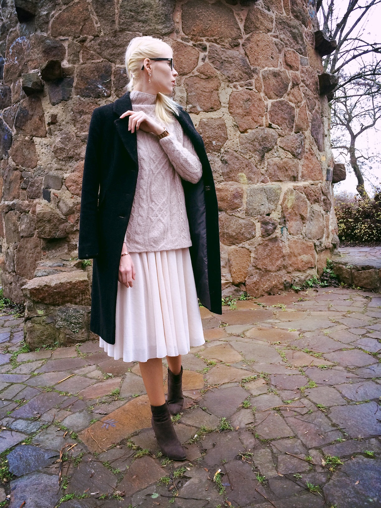 Lots of times announced, now here it is: My style for the third Advent. After Melina and Sabrina showed their lovely Advent-looks it was my turn to create mine. Because it was rainy and wet I decided for a clean and mainly quiet look. Less is more, so I did it without lots of jewelry and a bag. Just me on a walk in the park – in a tulle skirt.