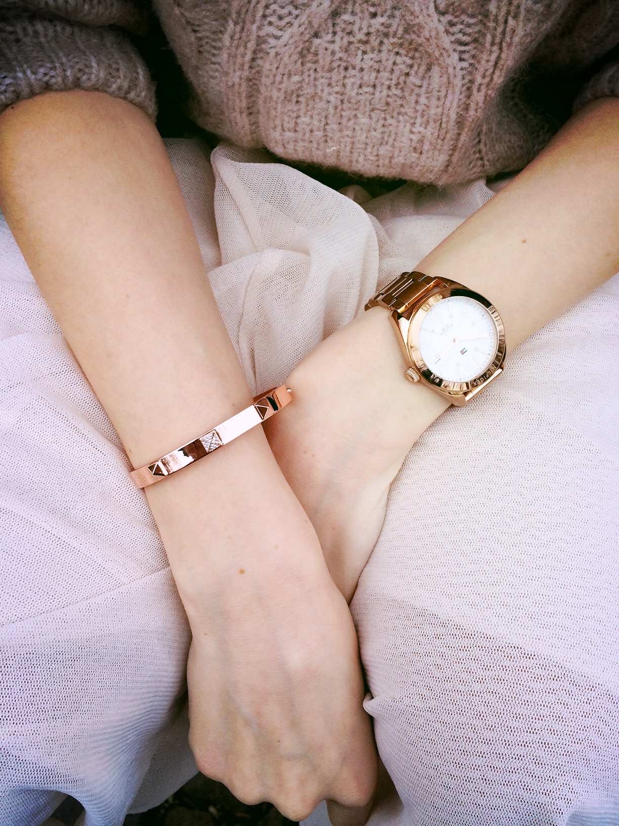 That soft pink sweater is so pretty and I love your bracelet and watch!